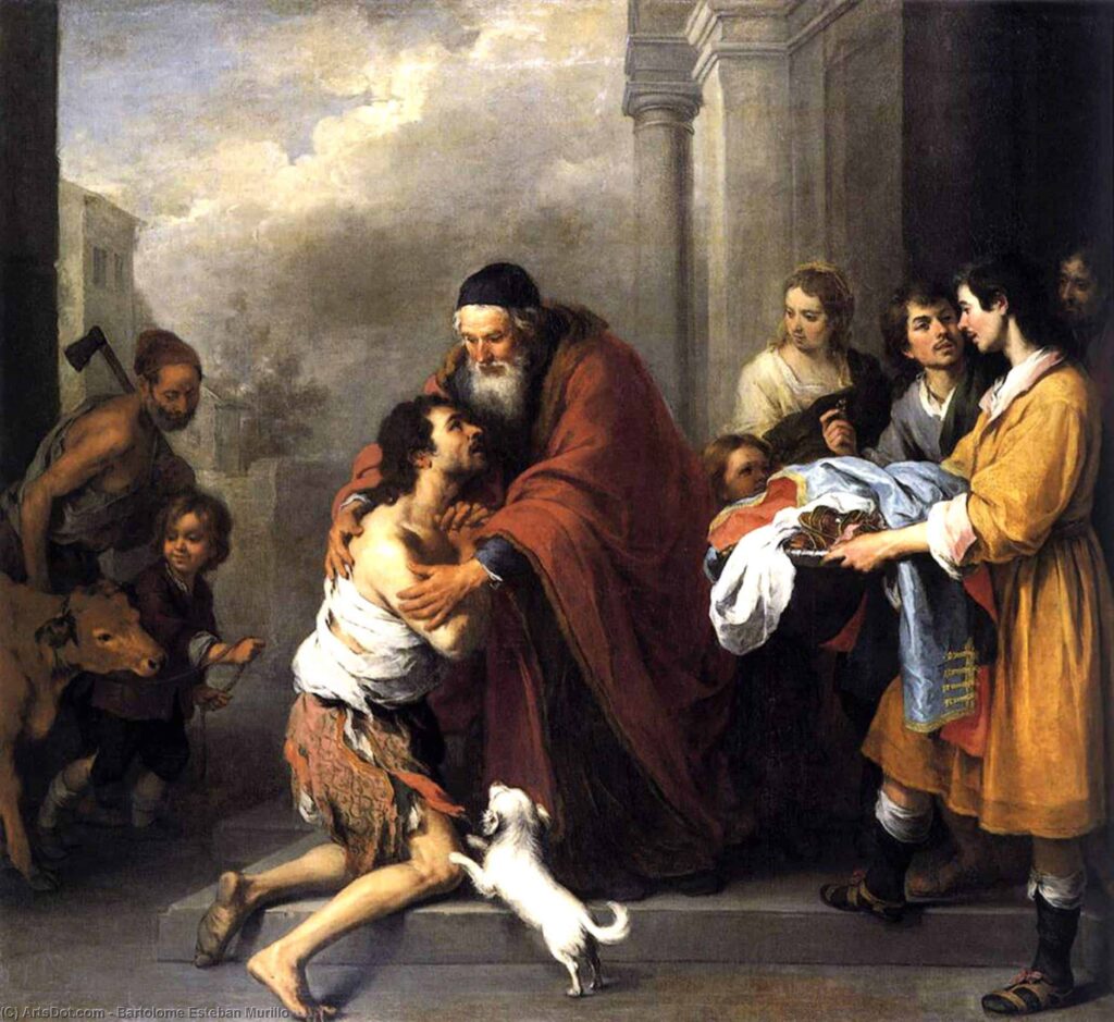 Притча не останавливается на том, как он «пришел в себя» и что этому предшествовало. Но мы часто видим, как притча разыгрывается на наших глазах — и с нами самими, так что можем себе представить. Какое-то время сын чувствует себя прекрасно — никакой отцовской опеки и этого зануды-брата, он волен тратить деньги как хочет, и пока отцовские деньги звенят в его кошельке, благосклонность блудниц и лесть собутыльников ему обеспечена. Жизнь хороша, и жить хорошо. Но вот деньги кончаются — и отец и брат проявляют свой ужасный, немилосердный, мстительный характер. Они что, не догадываются, что бедняга совсем издержался, может быть, даже, впал в долги? Они не понимают, как это ужасно — еще вчера у тебя были деньги, перед тобой услужливо распахивали двери, приятели почтительно смеялись твоим шуткам, женщины чуть не дрались за твое внимание, ты был окружен почетом и предупредительностью…. и вот — праздник кончился, вчерашние друзья тебя не замечают, прихлебатели и блудницы переключились на кого-то, у кого деньги еще есть…