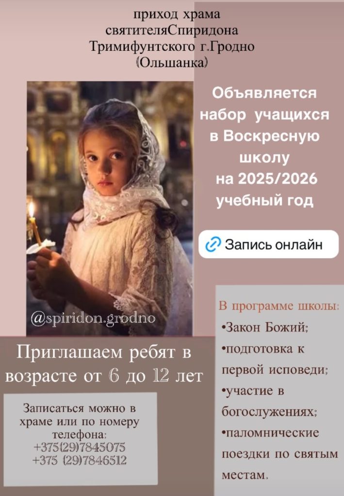 Набор учащихся в Воскресную школу